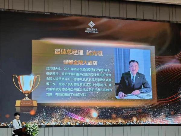 會議通報了金陵連鎖各成員酒店2022年上半年經(jīng)營管理情況,現(xiàn)場簽訂總經(jīng)理目標責任書、廉政承諾書。會議公布各項評比獲獎名單并進行頒獎,驛都大酒店總經(jīng)理封光雄榮獲金陵連鎖酒店最佳總經(jīng)理、客房部徐紅琴榮獲金花飛揚最佳客房服務(wù)員、驛都大酒店在2022年度金陵連鎖酒店“尊享金陵”6.18大促活動中獲得綜合業(yè)績第三名。