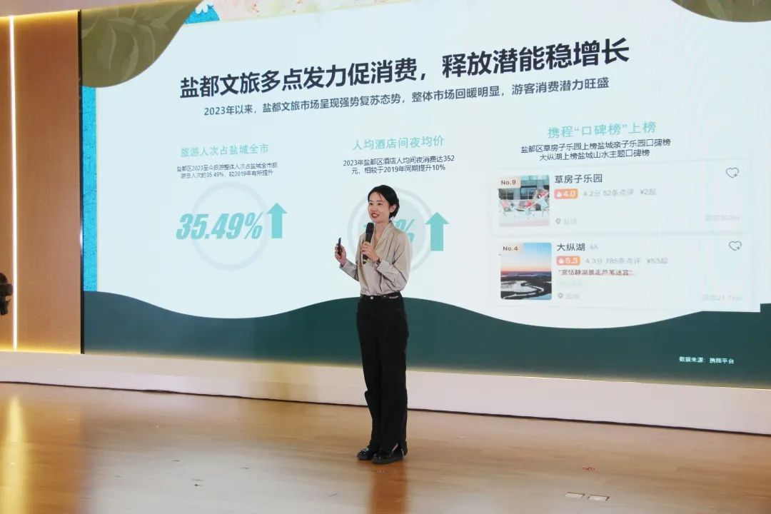 在推介會(huì)上,攜程集團(tuán)政府合作部項(xiàng)目總監(jiān)王焱發(fā)布“鹽都文旅及攜程集團(tuán)2023年戰(zhàn)略合作”重點(diǎn)內(nèi)容,深度剖析雙方未來合作的藍(lán)圖。她提到,2023年以來,鹽都文旅市場(chǎng)呈現(xiàn)強(qiáng)勢(shì)復(fù)蘇態(tài)勢(shì),整體市場(chǎng)回暖明顯。攜程一直都是鹽城文旅發(fā)展道路上堅(jiān)實(shí)的合作伙伴。去年雙方共同打造的“到鹽城·嗨周末”品牌獲評(píng)文旅部2022年旅游宣傳推廣優(yōu)秀案例。而今年,攜程將繼續(xù)深耕鹽城文旅,在全市文旅資源的加持之下,依托2023年攜程集團(tuán)振興A計(jì)劃開拓區(qū)縣合作,與鹽都文旅建立戰(zhàn)略合作關(guān)系,協(xié)同并進(jìn)共育花開。攜程集團(tuán)將聚合站內(nèi)外流量資源,從產(chǎn)品、營銷、消費(fèi)三大層面開足馬力驅(qū)動(dòng)文旅建設(shè)加速度,“串珠成鏈”,多措并舉推動(dòng)鹽都文旅造就高質(zhì)量發(fā)展格局。