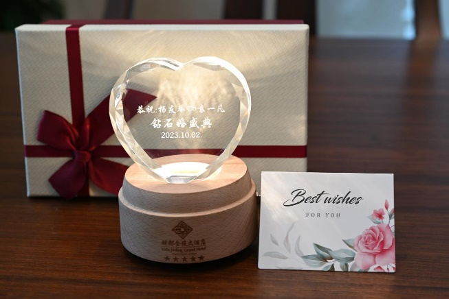 活動(dòng)現(xiàn)場(chǎng),一組組照片滿載著恩愛之情、感激之意和幸福之聲,記錄了這對(duì)恩愛夫婦的愛情故事,喚起了大家美好的回憶。酒店總經(jīng)理封光雄送上紀(jì)念品和誠(chéng)摯祝福,并與賓客一起合影紀(jì)念。特色禮物與互動(dòng)活動(dòng)既體現(xiàn)了酒店“細(xì)意濃情,體驗(yàn)金陵”的經(jīng)營(yíng)理念,又增進(jìn)了與賓客之間的情感聯(lián)系。驛都金陵大酒店將不斷創(chuàng)新進(jìn)取,以精致服務(wù)為賓客提供獨(dú)特舒適的體驗(yàn),不斷提升酒店口碑和品牌形象。